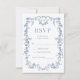 Invite guests to reply with this French Victorian dusty blue wedding RSVP card. Ornate vintage detailing blends with a soft dusty blue palette to create a romantic and historically inspired design. The refined layout provides clear readability and a polished, print ready finish that complements any elegant or vintage themed wedding.