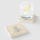 The coasters are gorgeous, a quality feel and heavy weight. They look like a precious archeological find. A rustic stone juxtaposed with a modern floral black and white print. I like the way the print goes slightly imperfect on the cut stone edges giving them a kind-of natural beauty.