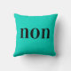 Teal pillow reads YES on one side, NO on the other. Both in French. Francais for yes is OUI and in France they say NON for No. So you are covered either way with this pretty pillow in a super trendy colour. Great gift for college dorm!