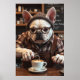 Add flavour and fun to your wall with this quirky French Bulldog barista poster. Wearing a brown and white flannel shirt and oversized glasses, the pup is mid-action pouring a foamy latte with paw-held precision. His intense stare and crooked smile hint he’s tasted the goods—maybe too much. Behind him, a chalkboard menu features drinks like “Fur Macchiato” and “The Slobber Shot.” Great for kitchens, cafés, or gifting to dog and coffee lovers alike.