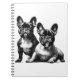 Two adorable French bulldogs are featured on the journal cover, sitting side by side on a pastel-coloured background. One is a light cream colour with floppy ears and a curious tilt to its head, while the other is a classic brindle with upright ears and a playful sparkle in its eyes. Both have their iconic smushy faces and endearing expressions that make them look like they're sharing a secret. Surrounding them are soft floral accents, like delicate roses and lavender sprigs, adding an elegant yet whimsical touch. The journal title, written in elegant script, arches above them, completing the charming scene.