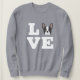 Love frenchies or know someone who does? This Frenchie Love sweatshirt is the perfect addition to any french bulldog lovers wardrobe. The design features a cute black and white french bulldog face and a bold white font which together, spell out LOVE.