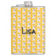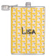 The flask itself is fine. It’s a cheap flask, obviously bought in bulk, however am prepared to overlook that. Given that it is a personalized item, I would have liked to have seen gift boxing instead of the generic packaging. Terrible printing, and/or quality. It’s a cheap, tacky vinyl. It is not cut straight and is also applied in a way that it is overhanging the bottom, causing the glue to catch on items and it will eventually roll and tear, damaging the wrap.