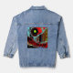 Step out in bold style with this Denim Jacket featuring Frequency Serpent. A serpentine red structure curves vertically across the fabric, marked by circular elements resembling vibrational cores, while horizontal bands of blue, green, and white flow in the background like waves of data. The interplay of intense colors and curved forms creates dynamic tension, transforming this classic denim piece into a wearable canvas of digital abstract art. Perfect for casual looks, artistic expression, or gifting to those who love fashion with energy.