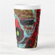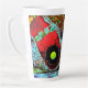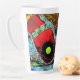 Sip your favorite drinks in bold style with this Latte Mug featuring Frequency Serpent. A serpentine red structure curves vertically across the mug, marked by circular elements resembling vibrational cores, while horizontal bands of blue, green, and white flow in the background like waves of data. The interplay of intense colors and curved forms creates dynamic tension, transforming this everyday mug into a functional canvas of digital abstract art. Perfect for coffee, tea, or gifting to those who love utility with creativity.