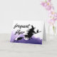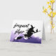 Frequent Flyer funny Witch flying on a broom greeting card with Smokey purple background