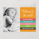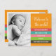 Sweet and full of charm, this modern photo birth announcement is the perfect way to introduce the newest member of your family. Personalise the rear side of the postcard with your return address for easy mailing. Custom colour available upon request. More colours available at berryberrysweet.com ©berryberrysweet.com