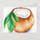 Fresh and Vibrant Watercolor Coconut on White Postcard