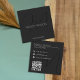 These fresh black minimal square business cards are customisable and your business info is easy to add. With the QR code on the back + all of your contact info it is a full business card to hand out.