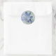Pretty single blue flower in focus with soft focus pastel blue background.