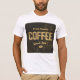 You cannot beat nice fresh brewed coffee and this design is a way of expressing that. It is a sign with the words fresh brewed coffee served here. It is written in a nice fond and set against a dark green background which is really effective. This fresh brewed coffee design looks great on this mens t-shirt. Perfect for yourself or as a gift