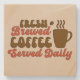 The coasters are gorgeous, a quality feel and heavy weight. They look like a precious archeological find. A rustic stone juxtaposed with a modern floral black and white print. I like the way the print goes slightly imperfect on the cut stone edges giving them a kind-of natural beauty.