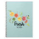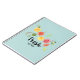 A spiral notebook with a cute design featuring tumbling citrus fruits - lemons, limes and grapefruits. Trendy typography says "Fresh" with a cute squiggly underline.