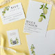 My fresh paintings of lemons on branches decorate these wedding invitations. The citrus design gives these invites a Mediterranean feel. Your wedding details are in a dark brown lettering that coordinates with the brown of the tree branches.