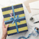 A fresh take on a classic nautical pattern in dark blue and gentle, warm yellow.