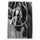 A beautiful grayscale image of fresh-cut sage drying against a rustic barn-wood wall.
