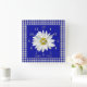 Fresh white daisy pattern on a blue field of sky give simple charm to this pretty wall clock that pleases the eyes and the heart. Large daisy blossom in the centre adds a special natural touch. Fresh as a daisy blue, white and gold colours. Custom text on bottom may be personalised using template provided. You may also enjoy the delightful matching gifts and cards available in my studio store. Original photography and design by Anura Design Studio.