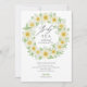 Beautiful baby shower tea invitation featuring a watercolor daisy wreath with a coordinating flower back for an extra special touch.