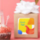 An eye catching colourful square sticker featuring bold colours and shapes with a red chicken, orange triangle, yellow square, and royal blue circle painted with watercolor. You can customise the text to fit your needs.