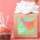 An eye catching colourful square sticker featuring a pink orange chicken on a green watercolor wash background painted with watercolor. You can customise the text to fit your needs.