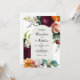 A modern romantic choice in wedding invitations, this design features rich colours of burgundy red, russet orange, blush pink and teal green leaves in a lovely floral border over a trendy arched frame surrounding your text. The back of the invitation has a matching floral bouquet making a uniquely charming invitation. These colours are often used in weddings from mid-summer into fall and through the winter months. Personalise the text template with your wedding details. Other matching wedding products are available to coordinate with this invitation.