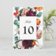 A beautifully romantic and elegant table number card design featuring rich romantic colours of burgundy red, russet orange, blush pink and teal green leaves in a lovely floral border surrounding your text. Create a separate card for each of your tables at your wedding reception or other special banquet or event. Simply personalise the table number with your desired table number, add to cart, then update another card with the next table number, add to cart, and so on until you have all the table numbers you need. This design is a lovely choice for weddings in the fall, late summer or winter months.