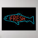 A cool photograph of a fresh fish neon sign on a black background. Copyright © 2009 Karin Hildebrand Lau.