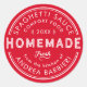 Easy to customise homemade canned goods labels for your kitchen. Add a personal signature to gifts for friends. The texts, date and the background colour - shown as red here - are customisable.