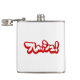 The flask itself is fine. It’s a cheap flask, obviously bought in bulk, however am prepared to overlook that. Given that it is a personalized item, I would have liked to have seen gift boxing instead of the generic packaging. Terrible printing, and/or quality. It’s a cheap, tacky vinyl. It is not cut straight and is also applied in a way that it is overhanging the bottom, causing the glue to catch on items and it will eventually roll and tear, damaging the wrap.