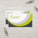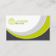 A contemporary real estate business card with house logo and modern grey and fresh lime green colour scheme.