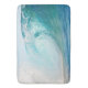 Bath mat with a photo of a fresh, big blue surfing wave breaking in the Pacific Ocean. The set has a strong association of freshness, cleanliness and relaxation.