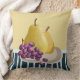 Classic art meets contemporary interior design with this twist on a still life artwork. Pear and grape graphics contrast with a background of on-trend colours of cream beige and navy blue.