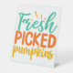 Embrace the warmth and beauty of pumpkin season with our "Farm Fresh Pumpkins Picked Daily" typography pedestal sign. This exquisite piece of art captures the essence of the season, making it the perfect addition to your autumn collection this year.