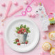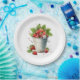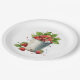 Paper plates with a summery graphic of a bunch of strawberries overflowing in a bucket.