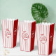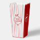 These fun popcorn boxes are the perfect addition to any home theatre, movie awards party, birthday party and more! These cute retro style boxes feature red and white stripes with red text that reads: "Fresh Pop Corn sweet and crunchy". The sides feature a red background and sample text that reads: "Enjoy!" along with a custom name or other text. Click "Personalise this Template" to easily change or remove the sample text on the sides.