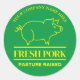The label features a clean and modern design with bold typography and a subtle illustration of a pig, emphasizing the freshness and quality of your pork products. The use of fresh, natural colours such as green and yellow conveys a sense of purity and wholesomeness.
