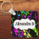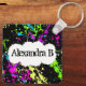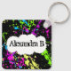 Fresh Retro Neon Paint Splatter on Black Key Ring