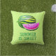Pillow in a whole watermelon accompanied by a juicy red slice dotted with black seeds. Below the fruit, bold green text reads “SUMMER IS SWEET,” evoking the refreshing, sugary delight of watermelon as a quintessential summer treat.