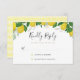 Fresh & Rustic Lemon Wedding RSVP Card. Click the 'Details' at 'Personalise this template' and edit the texts. For further customisation, please click the "click to customise further" and use the design tool to modify. You can change the text colour, style and sizes. You want other type of paper? Please chose one you like. If you want the other shape of the paper, please try the other shapes. Enjoy customising the template for your special day.