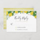 Fresh & Rustic Lemon Wedding RSVP Card. Click the 'Details' at 'Personalise this template' and edit the texts. For further customisation, please click the "click to customise further" and use the design tool to modify. You can change the text colour, style and sizes. You want other type of paper? Please chose one you like. If you want the other shape of the paper, please try the other shapes. Enjoy customising the template for your special day.
