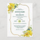 This pretty and fresh spring yellow floral wedding invitation postcard is perfect for a Spring Wedding or a Summer Wedding. This unique and elegant design features bright flowers in yellow with blue berries and botanical greenery accents. A gold frame elegantly surrounds the soft yellow invitation postcard. So sweet and elegant for your special wedding with your family and friends.