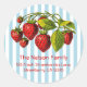 Fresh Strawberries Blue Stripes Classic Round Sticker