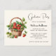 Graduation invitation with a fresh summer vibe. A cute illustration featuring fresh picked strawberries filling up a quaint wicker basket.