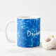 Fresh blue water, playing in the sun. Abstract of Nature, natural art. The beauty of clean, clear, cold fresh water, which is the main element of life on the planet Earth and, I believe, everywhere in the Universe. Funny coffee mug. You can change or delete the image and the text Drinking water