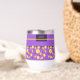 Designed to bring a burst of freshness to your adventures, let’s discover this beautiful customisable tumbler! Dark and light purple background, with yellow traits adorned by a colourful assortment of summer fruits—juicy strawberries, zesty lemons, tangy kiwis, refreshing grapefruits, and vibrant oranges—you'll feel the essence of sunny days with every wear.