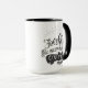 This mug features whimsical hand lettering that says "Freshly Brewed Coffee" on a white background. The lettering features decorative swashes and ornamental swirls. The design is repeated on the back.