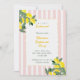 Celebrate a sweet milestone with this lemon-themed graduation invitation featuring soft pink stripes, fresh citrus illustrations, and elegant script typography. Perfect for spring and summer graduation parties, this design stands out among trendy citrus, pastel, and floral-inspired invites. Easily personalize with your event details for a stylish and cheerful graduation celebration. Original artwork by Caroline Bonne Muller.