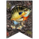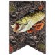 Freshwater Fishing Party Bunting - features muskie, walleye, northern pike, king salmon, striped bass, bigmouth bass, blue gill with a camo background
