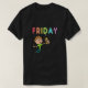 Happy worker holds up Friday sign to celebrate the end of the working week