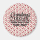 Fun fridge magnet. Grandma's kitchen - good food served daily with a heaping spoon of love. Red hearts background.